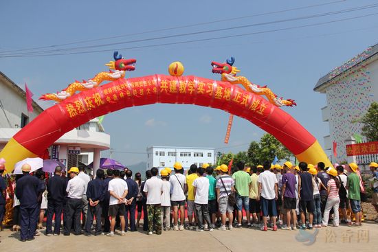 熱鬧的揭牌儀式現(xiàn)場,桂林興松林化有限責(zé)任公司大門前