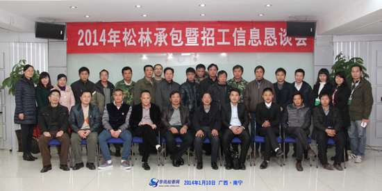 1月10日下午,由華訊松香網(wǎng)主辦的“2014年松林承包暨招工信息懇談會(huì)”在華訊集團(tuán)多功能會(huì)議室隆重舉行,來自于廣西、云南、廣東、貴州、海南等地近40名松林松脂從業(yè)者參加了本次會(huì)議。會(huì)議由廣西華訊信息技術(shù)有限公司副總經(jīng)理陳有斌主持。
