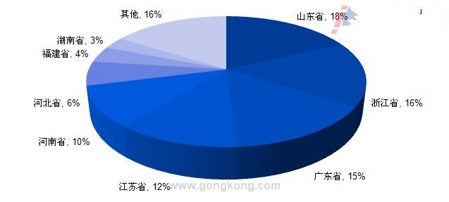 2010年中國造紙產(chǎn)量地區(qū)分布