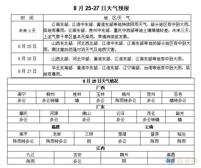 松香產(chǎn)區(qū)8月25-27日天氣預(yù)報