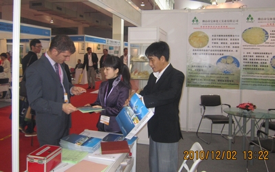 佛山市寶林化工參展人員在向外商介紹情況