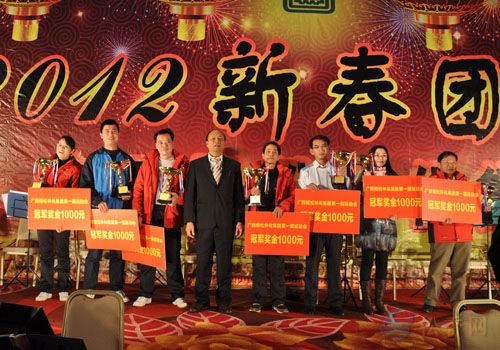 梧州市政協(xié)副主席何深(右四)為獲得亞軍的運動隊發(fā)獎