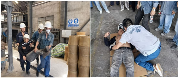 演練模擬員工高溫作業(yè)時(shí)突發(fā)中暑暈倒場(chǎng)景,現(xiàn)場(chǎng)人員立即報(bào)告廠隊(duì)負(fù)責(zé)人及公司安全環(huán)保部,并將中暑員工轉(zhuǎn)移至陰涼處。公司安環(huán)部接到報(bào)告后,第一時(shí)間啟動(dòng)高溫中暑應(yīng)急預(yù)案,迅速通知應(yīng)急救援小組趕赴現(xiàn)場(chǎng),確保響應(yīng)環(huán)節(jié)銜接順暢。