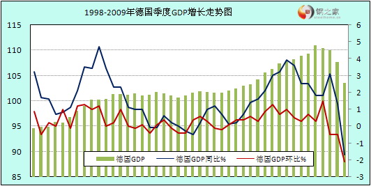 德國聯(lián)邦統(tǒng)計局公布的數(shù)據(jù)顯示,德國國內(nèi)生產(chǎn)總值第一季度經(jīng)季調(diào)后環(huán)比下降3.8%,這是自1970年季度數(shù)據(jù)開始匯編以來的最大單季降幅,金融危機(jī)抑制了德國的出口和投資。