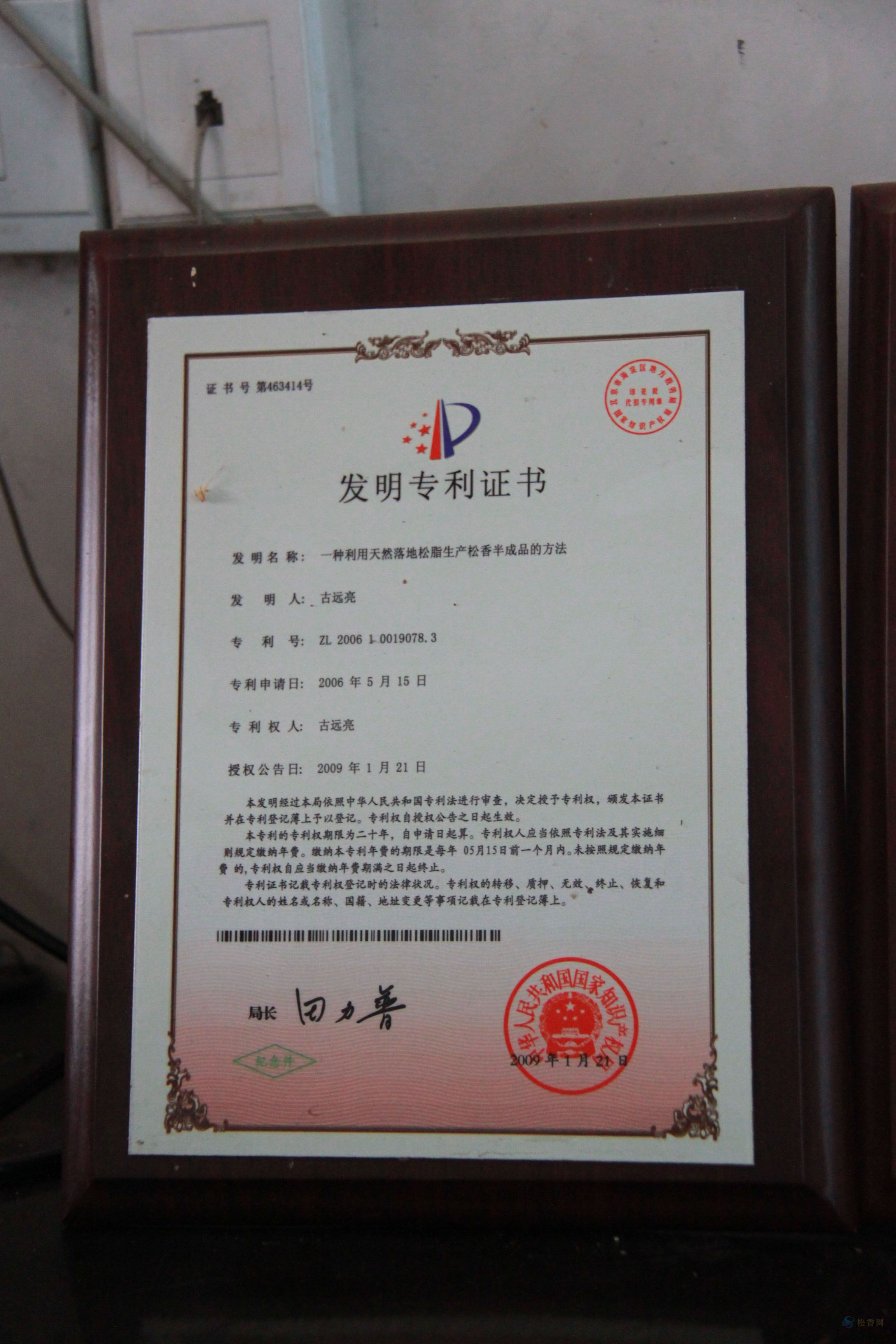 “一種利用天然落地松脂生產(chǎn)松香半成品的方法”,我已申請國家專利,并于2009年1月21日獲得國家發(fā)明專利證書,專利號為“ZL200610019078.3。其技術(shù)要點是:將落地松脂加水加熱溶解、壓榨過濾、清洗包裝而獲得松香半成品。目前,尚未授權(quán)任何單位和個人生產(chǎn)松香半成品,但發(fā)現(xiàn)社會上已有人采用該專利方法生產(chǎn)、銷售松香半成品。請你在生產(chǎn)過程中杜絕收購該產(chǎn)品,否則,本專利權(quán)人將依法維權(quán),到時購買人將應承擔侵權(quán)的法律后果,如有不到或冒犯之處,敬請諒解。