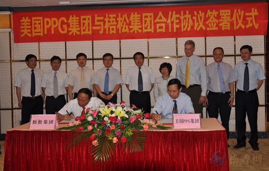公司董事長(zhǎng)孔仕才與美國(guó)PPG工業(yè)公司中國(guó)區(qū)總經(jīng)理?xiàng)钚l(wèi)華(右)簽約