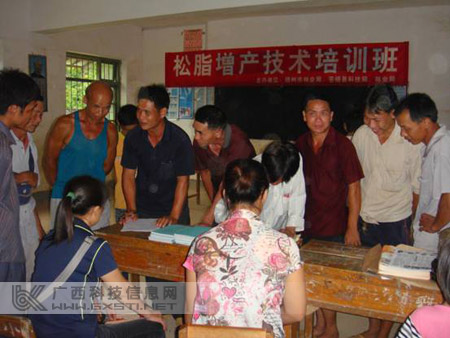 7月22日,廣西蒼梧縣科技局聯(lián)合縣林業(yè)局、梧州市林業(yè)局到該縣沙頭鎮(zhèn)雙尚村舉辦松脂增產(chǎn)技術(shù)培訓(xùn)班。雙尚村100多位脂農(nóng)參加了培訓(xùn)。