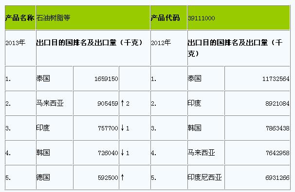 據(jù)海關(guān)統(tǒng)計(jì),從出口目的國別分析,按照出口量遞減依次為:泰國、馬來西亞、印度、韓國、德國。根據(jù)2012年1月累計(jì)出口數(shù)據(jù),按照出口量遞減依次為:泰國、印度、韓國、馬來西亞、印度尼西亞。詳見下表。