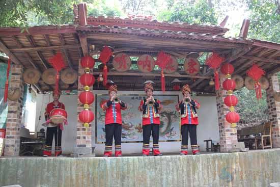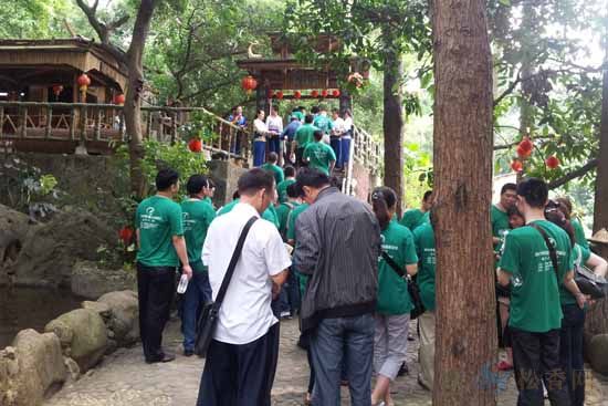 4月19日,南寧的天氣格外的好,在南寧參加2013松香產(chǎn)業(yè)高峰論壇的代表一行近五十人,一路歡聲笑語向壯民族的文化發(fā)祥地之一的廣西武鳴縣進(jìn)發(fā)。上午的目的地是伊嶺巖風(fēng)景區(qū),該景區(qū)依托伊嶺巖獨(dú)特的喀斯特溶洞及秀麗的山水風(fēng)光,同時(shí)將壯族的民族風(fēng)情融入到美麗的自然景觀當(dāng)中,代表們一邊欣賞著自然景觀,在民俗長廊真實(shí)的感受了一把壯家傳統(tǒng)的迎客禮儀,從嗩吶迎客、跳竹杠舞、對唱山歌、喝迎客酒、品壯家特色小吃等等,領(lǐng)略到了絢麗多姿的壯族文化。