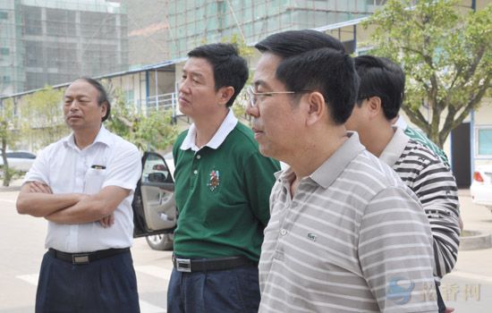 廣西區(qū)工業(yè)和信息化委員會副主任潘峰(中)在公司調(diào)研,右二為梧州市人民政府副市長彭健銘,左二為公司董事長孔仕才,右一為公司總經(jīng)理車乾池。