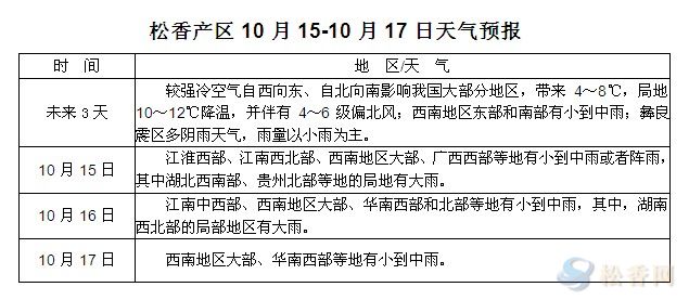 華訊松香網提醒:未來三天一股較強冷空氣自北向南影響各松香產區(qū),其中西南地區(qū)降雨持續(xù),陰雨天氣影響云南、廣西、貴州等局部,造成松脂采收工作滯緩。近期各地天氣逐漸變涼,偏北地區(qū)產區(qū)工人上山積極性有所減弱,受此影響,粵桂閩贛等地整體松脂批量釋放預期難以達到,云南地區(qū)松脂量則需由松脂松香價格走向而定。