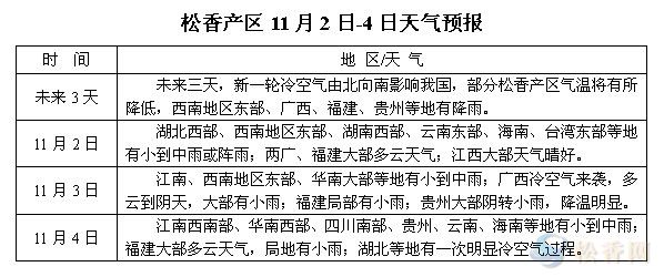 松香產(chǎn)區(qū)11月2日-4日天氣預(yù)報(bào)