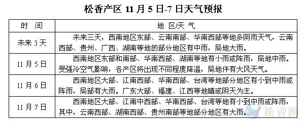 華訊松香網(wǎng)溫馨提醒:未來三日,云南西部、貴州、廣西、湖南等地的部分地區(qū)有中雨,局地大雨;粵閩贛大部地區(qū)晴或陰天為主。受強冷空氣影響,多數(shù)產(chǎn)區(qū)將迎來大風(fēng)降溫天氣,采脂工的積極性或?qū)⑹苡绊?。松脂量方面,本周江西、福建等地最后一批松脂上市量或?qū)⒂兴黾?,云南地區(qū)隨著產(chǎn)季深入,脂量有望進一步增加;兩廣等地如無更多利好因素刺激,或延續(xù)前期緩慢釋放狀態(tài)。
