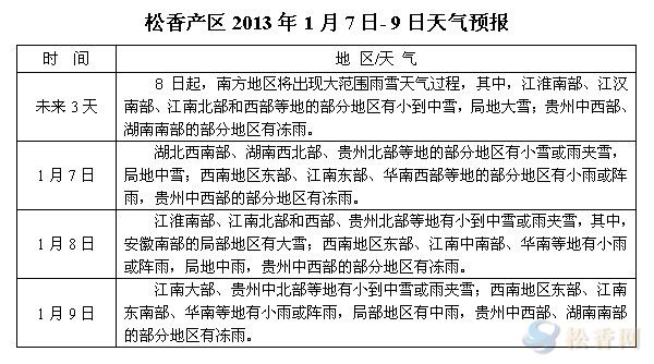 華訊松香網(wǎng)溫馨提醒:短信:未來三日,兩廣、江西、福建、貴州、湖北、湖南等地持續(xù)低溫雨雪天氣,局地有凍雨;上述地區(qū)產(chǎn)季基本結(jié)束,低溫雨雪天氣對市場影響不大。正處生產(chǎn)旺季的云南大部地區(qū)以晴或多云天氣為主,采脂工作可正常進(jìn)行。