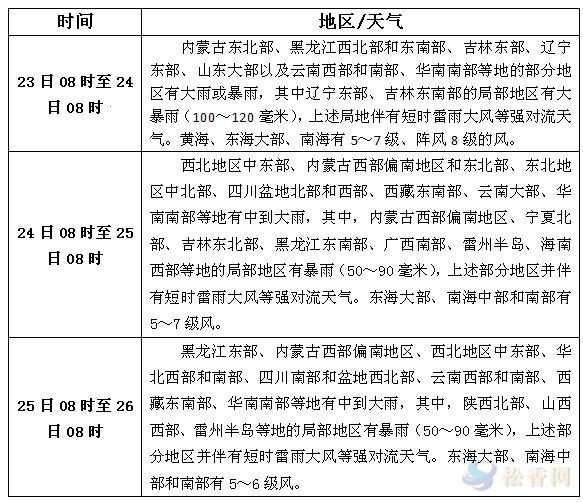 華訊松香網(wǎng)溫馨提醒:未來三天云南西部和南部、華南南部等地的部分地區(qū)有大雨或暴雨,并伴有短時雷雨大風(fēng)等強對流天氣。另外,預(yù)計今天白天福建中部、江西東北部、湖南大部、湖北西部和南部以及重慶等地的部分地區(qū)最高氣溫可達(dá)37~39℃。請上述地區(qū)注意避開極端天氣。