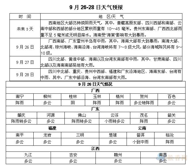 松香產(chǎn)區(qū)9月26-28日天氣預(yù)報(bào)