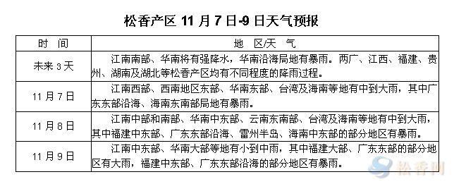 松香產(chǎn)區(qū)11月7日-9日天氣預報
