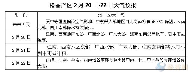 華訊松香網(wǎng)提醒:未來(lái)三天,兩廣、江西福建等產(chǎn)區(qū)又降迎來(lái)一次降雨降溫過(guò)程,雨雪天氣范圍擴(kuò)大;云南持續(xù)晴好天氣,部分地區(qū)的干旱情況短期內(nèi)仍得不到緩解,但干旱地區(qū)多不是松脂主產(chǎn)區(qū),對(duì)松脂量的影響相對(duì)不大,主要還是松香市場(chǎng)行情的走向?qū)?duì)松脂市場(chǎng)有所影響。