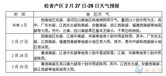 松香產(chǎn)區(qū)2月27日-29日天氣預(yù)報
