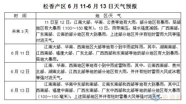 松香產(chǎn)區(qū)6月11日-13日天氣預(yù)報(bào)