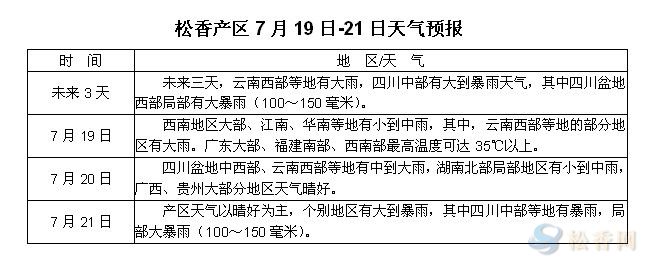 華訊松香網(wǎng)溫馨提示:未來三天,產(chǎn)區(qū)天氣以晴好為主,局地有短時小到中雨,其中,云南西部等地的部分地區(qū)有中到大雨,四川局地有大暴雨,林區(qū)工作人員注意防雷防暴。天氣晴朗有利于松脂采收運輸,但受各地農(nóng)忙節(jié)氣影響,部分采脂人員將轉(zhuǎn)移至農(nóng)作物收割、播種中,暫緩采脂售脂。