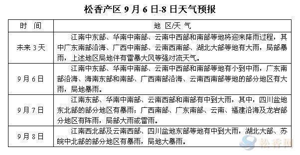 華訊松香網(wǎng)溫馨提醒:未來三天,桂粵滇閩贛等產(chǎn)區(qū)以晴或陰天為主,晝夜溫差較前增大,另桂中南、粵中南、滇西南部分地區(qū)有陣雨或雷雨,局部大到暴雨。本周兩廣、云南、湖北等市場松脂流通量仍偏少,福建、江西局部較前略有增多。另外,進入9月,云南產(chǎn)區(qū)雨季逐漸結(jié)束,生產(chǎn)旺季即將到來,市場雖有旺季推遲的預(yù)期,但現(xiàn)階段業(yè)內(nèi)已將部分關(guān)注點轉(zhuǎn)向云南市場。