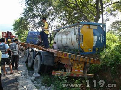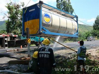 7月13日上午8時(shí)許,廣西桂平市發(fā)生一起車(chē)輛翻車(chē)事故,一輛滿(mǎn)載17噸松節(jié)油的槽罐車(chē)側(cè)翻在永培村路段路邊溝里,桂平消防中隊(duì)經(jīng)過(guò)3個(gè)多小時(shí)的掩護(hù)看守,成功處置這一危險(xiǎn)事故,保住車(chē)主價(jià)值10萬(wàn)美元的物資。