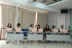 第一環(huán)節(jié):首先,男女嘉賓以自我推薦的方式上臺(tái)做嘉賓,李嫻靜、曾宇、張梅、劉如云等幾位女生微笑著勇敢地款款踏入女嘉賓席。相比女員工落落大方的自我推薦,男員工較為靦腆,只有一位男嘉賓自告奮勇登臺(tái)。他一上場激起了全場的歡呼,因?yàn)樗且?ldquo;松香客戶”的身份來參加活動(dòng),名叫李品禮。參加非誠勿擾的嘉賓人數(shù)不足怎么辦?主持人有好招,“接歌”賽來推薦。由主持人劉峰起歌,場下組員按歌詞最后一個(gè)字接歌,三十秒內(nèi)接不上的由組長推薦隊(duì)員到嘉賓席。幾輪小組賽下來勝者少,敗者多,多名帥男靚女被組長“貢獻(xiàn)”出來。十四位女嘉賓應(yīng)運(yùn)而生,在組員們熱情高漲的呼聲又把玉慶斌、蘇愛勇、雷延聲、蘇致誠四位男嘉賓推上競爭區(qū)。