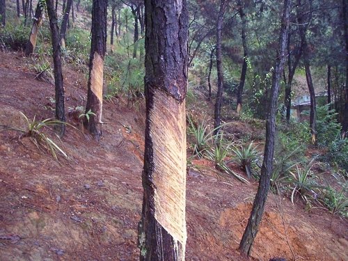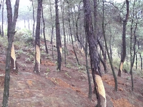 華訊松香網(wǎng)梧州訊 3月8日,梧州市部分山林拉開釆脂序幕,脂農(nóng)上山采脂時(shí)間比往年提前-個(gè)月,-些山頭的松樹早已被承包,毎棵承包價(jià)16元左右,脂農(nóng)將毎棵樹的采脂割面淸理好,等待晴好天氣的到來(lái)。