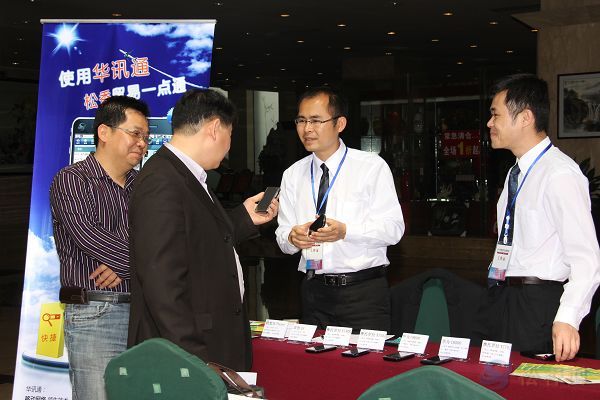 華訊松香網(wǎng)長沙訊 長沙會議報到工作在緊鑼密鼓的進(jìn)行著,而在簽到臺旁邊的“華訊通”展臺也沒閑著,它吸引了不少參會代表的駐足觀看。他們聽工作人員仔細(xì)講解,并不時詢問相關(guān)問題。